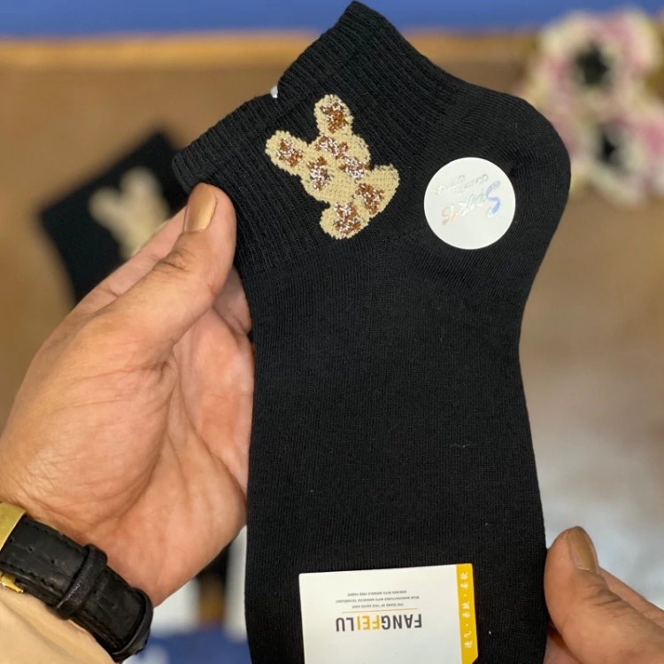 جوراب زنانه مشکی طرح خرگوش لمه دار