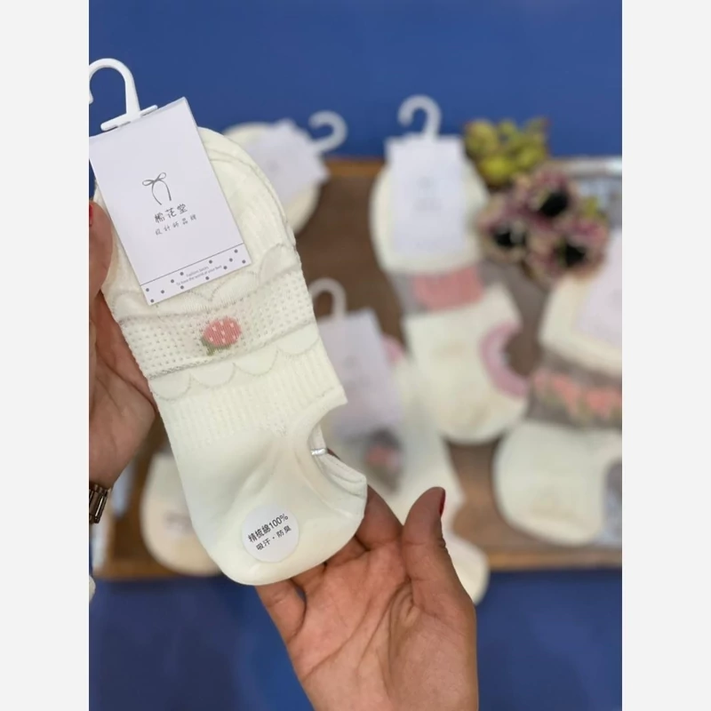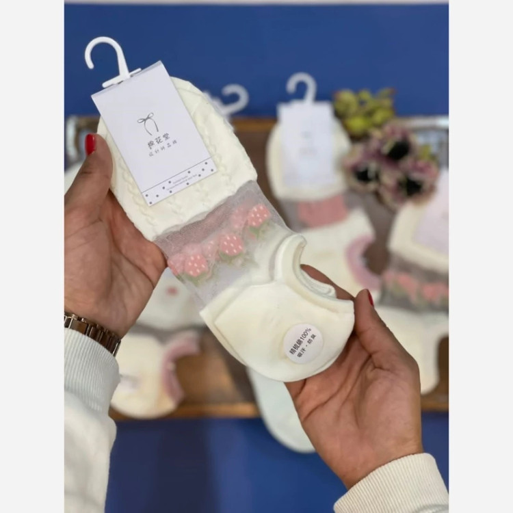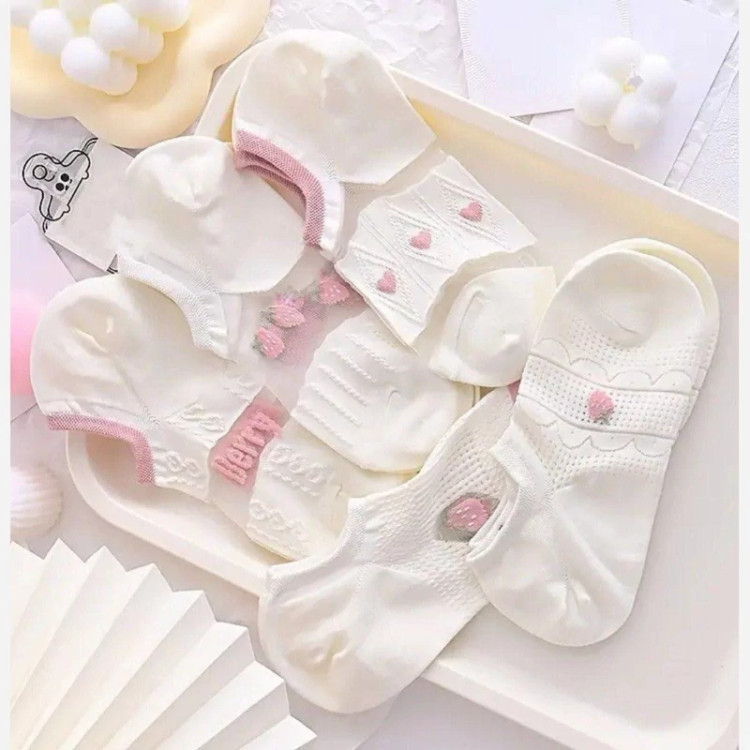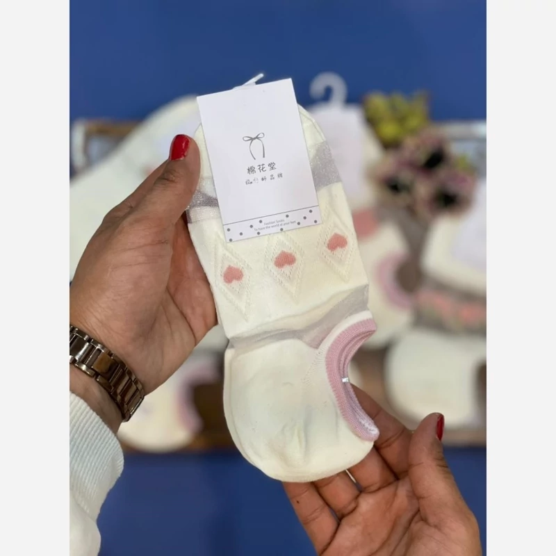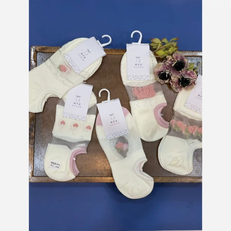 جوراب شیشه ای زیرقوزکی طرح قلب و توت فرنگی